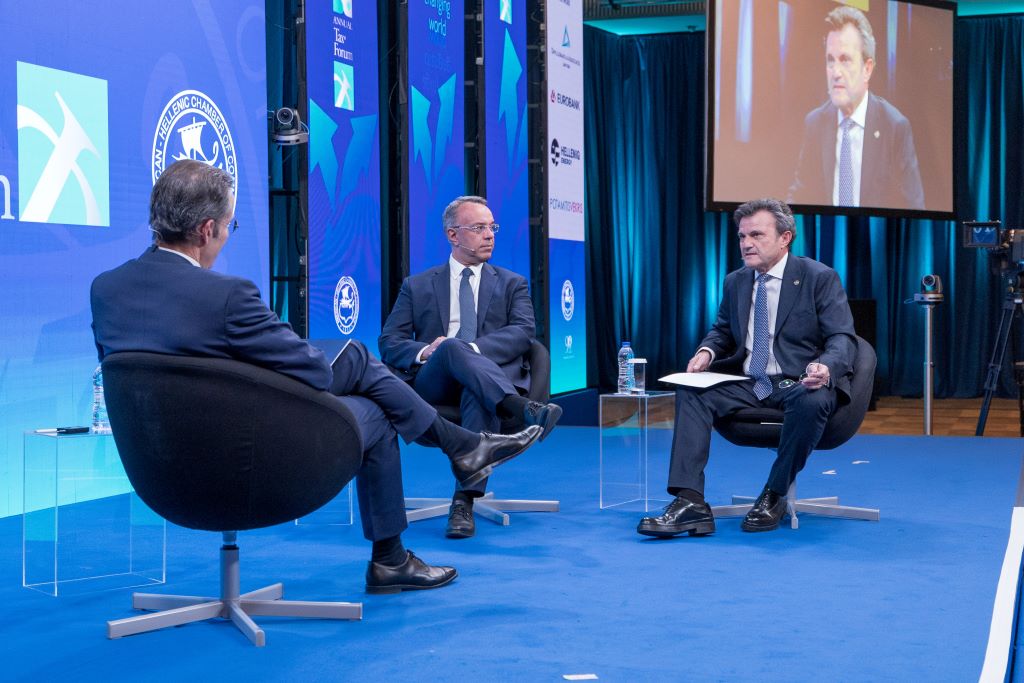 Ch. Staikouras, Minister of Finance, N. Bakatselos, President, American-Hellenic Chamber of Commerce, I. Stavropoulos at the 18th Tax Forum organized by the American-Hellenic Chamber of Commerce, November 2022